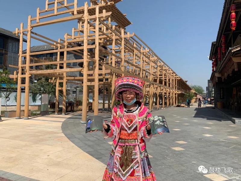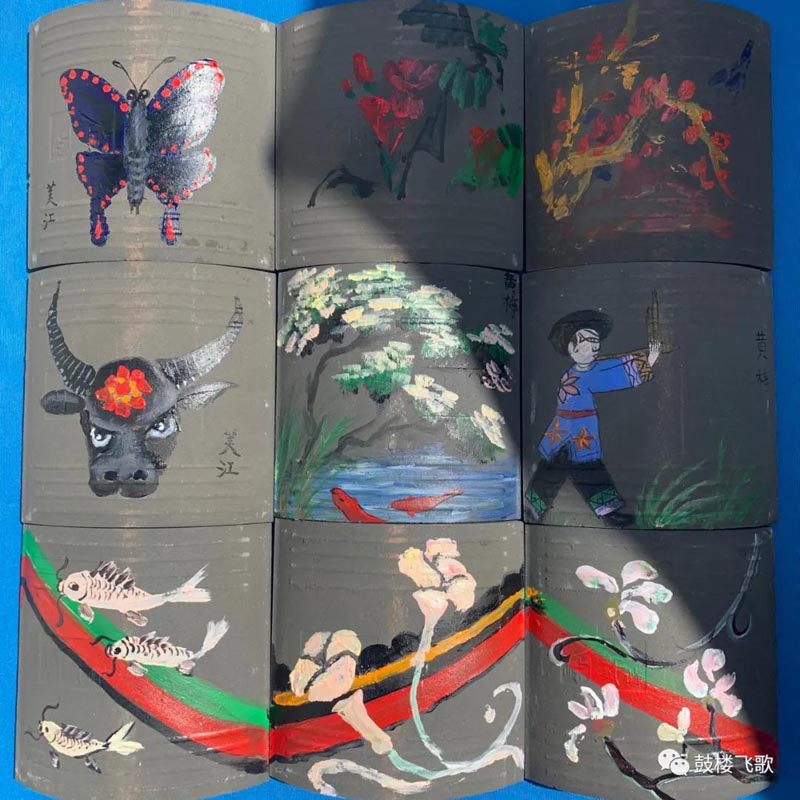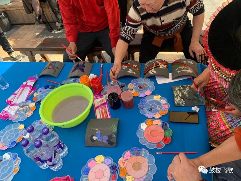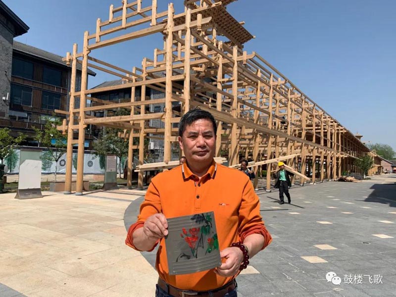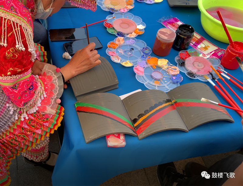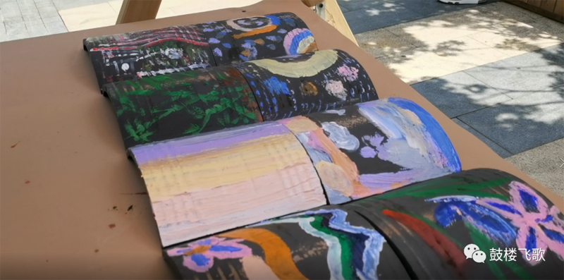 4、后期将由工作人员将您创作的瓦片,盖在风雨桥上,为鼓楼风雨桥添砖加瓦。
