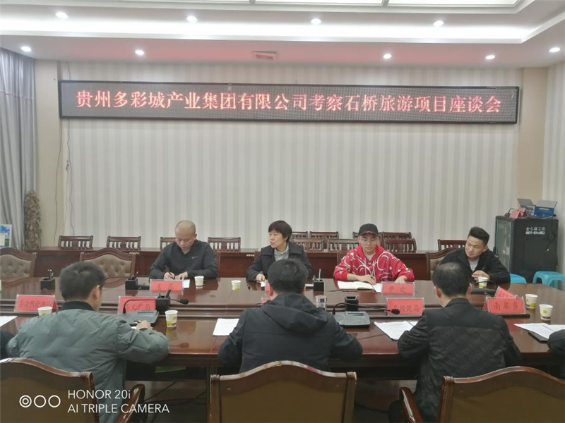 4月20日,贵州多彩城产业(集团)有限公司副总经理祝雪莲、多彩城文化发展有限公司总经理尹欢、多彩城集团运营部经理王磊一行赴丹寨考察洽谈石桥旅游项目。丹寨县人民政府副县长岑如刚,县投资促进局、县文体广电旅游局、县自然资源局等部门负责人参加项目洽谈会。