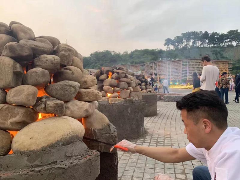 食物的烟火气为这片土地带来了生气,有了生气也就有了人气。贵州多彩城正还原最原始的烹饪方式,石块与土拼凑的土灶,山木枯柴生火,一只土鸡,一头香猪,配以贵州特产辣椒、花椒、葱蒜、洋葱,或蒸煮、或烧烤,美食出锅的惊叹,香气扑鼻的兴奋,再配以特色米酒,令人不禁载歌载舞,鼓乐齐奏,忘却烦恼与世俗,只有篝火与美酒。这是贵州村寨中最让人流连忘返的自然体验,非亲临无法想象!