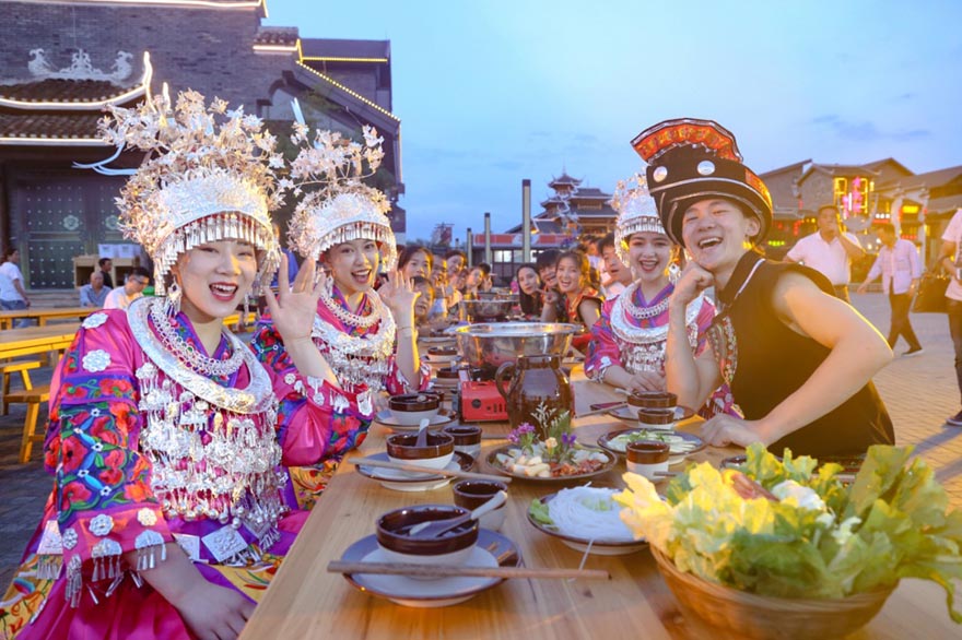鼓楼长桌宴” 是贵州人用演艺、美食、市集展示独有民族菜系的“非遗文化综合体”。